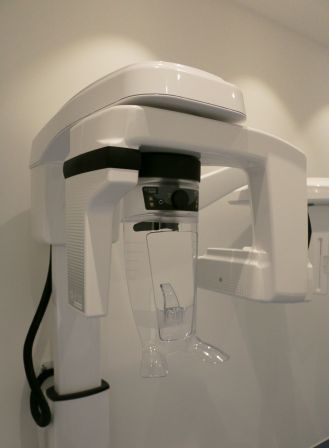 In einer eigenen Halterung wird der Kopf des Patienten bequem positioniert. Anschließend kreist eine Röntgenröhre um den Kopf. Bei dieser Untersuchung werden die Zähne des gesamten Ober- und Unterkiefer und die Kiefergelenke dargestellt.